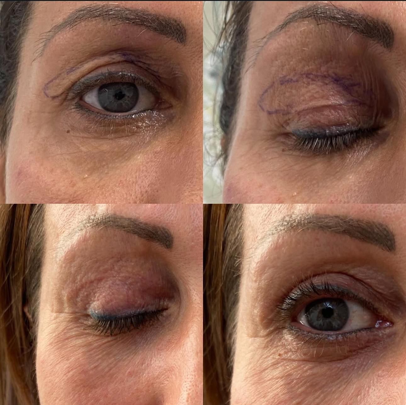 Para exceso de piel, bolsas de grasa, caída del párpado y signos de envejecimiento en la zona periocular.
